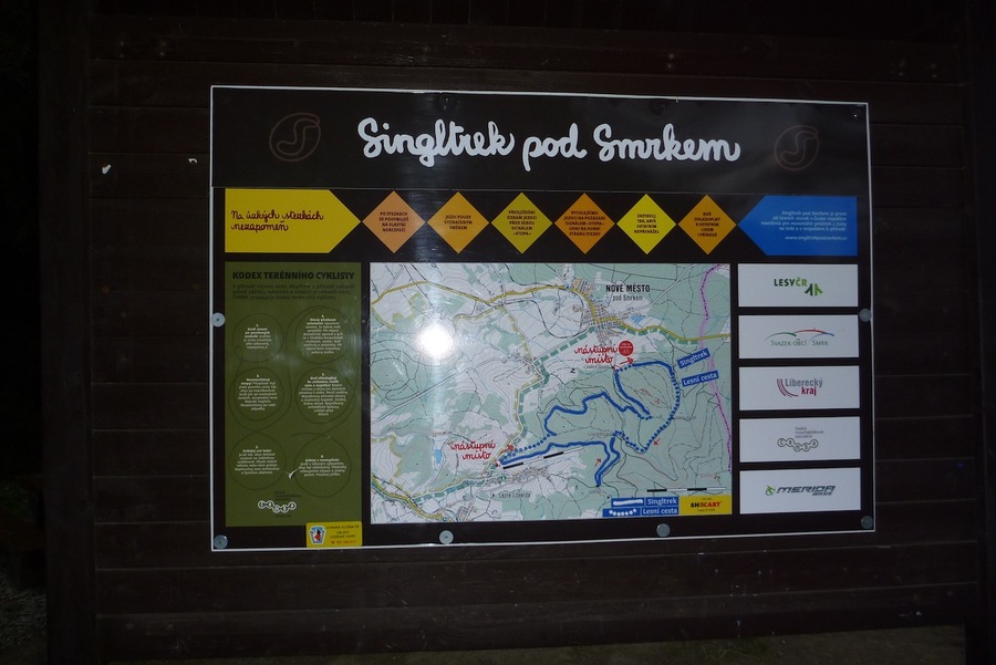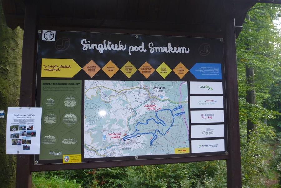 Tato stezka jde popsat lehce dvěmi slovy: jedinečná zábava! Cestu zacnete v Novém městě pod Smrkem u místního přírodního koupaliště, kde zároveň vyrůstá Sinltrek centrum. Zde bude podle našich informací nožnost testování kol značky Merida. Celý okruh je velmi zábavný, vede po uměle vytvořených lesních cestách, kde se budete vyhýbat stromům a zaroveň se blízce zžívat se svým kolem. Místo odkud jsme vyjeli je oficialní nástupní místo s parkovným 50kč. Další místo je u restaurace Obří sud. Zde je parkovné 90kč vybíráno soukomníkem nepřispívajícím na údržbu tratí.
